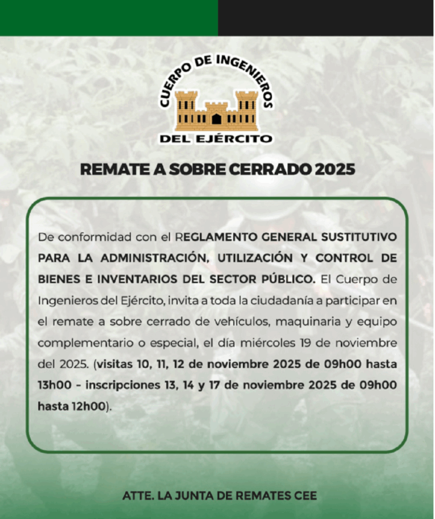 Reafirmamos nuestro compromiso con la institución y con el pueblo ecuatoriano; los soldados del ingenio, la explosión y el verde fecundo, estaremos prestos a trabajar, abriendo vías para el progreso, tendiendo puentes que unen pueblos, apoyando a la seguridad, al desarrollo y al engrandecimiento de nuestro Ecuador.