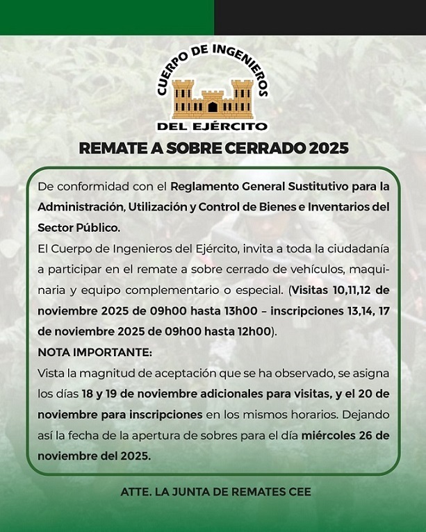 Reafirmamos nuestro compromiso con la institución y con el pueblo ecuatoriano; los soldados del ingenio, la explosión y el verde fecundo, estaremos prestos a trabajar, abriendo vías para el progreso, tendiendo puentes que unen pueblos, apoyando a la seguridad, al desarrollo y al engrandecimiento de nuestro Ecuador.