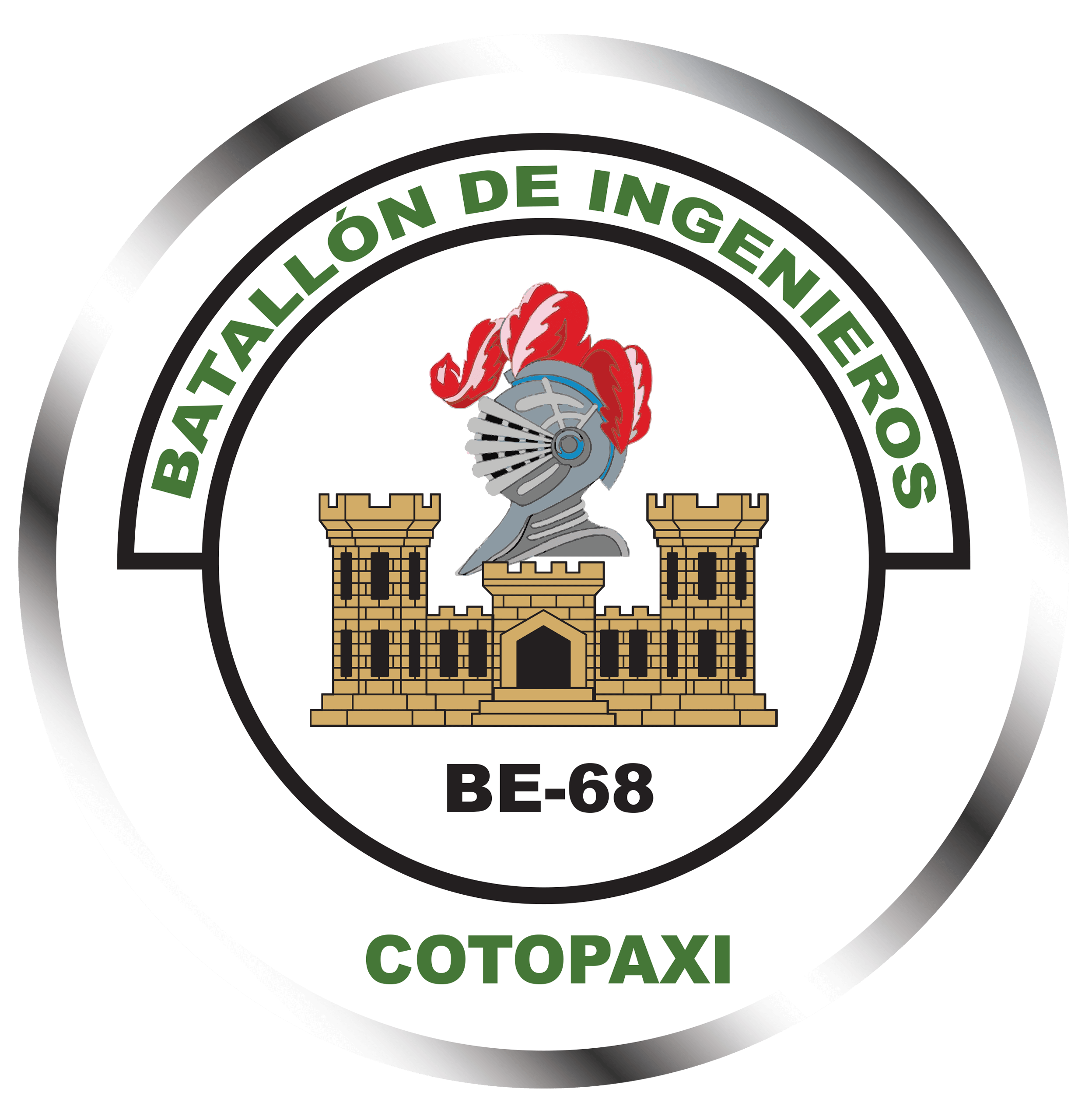 El escudo del Batallón de ingenieros N° 68 “COTOPAXI”, está formado por un circulo donde se impone al margen superior su nivel de unidad de color verde representando el arma de ingeniería demostrando la fértil presencia del soldado de ingeniería.