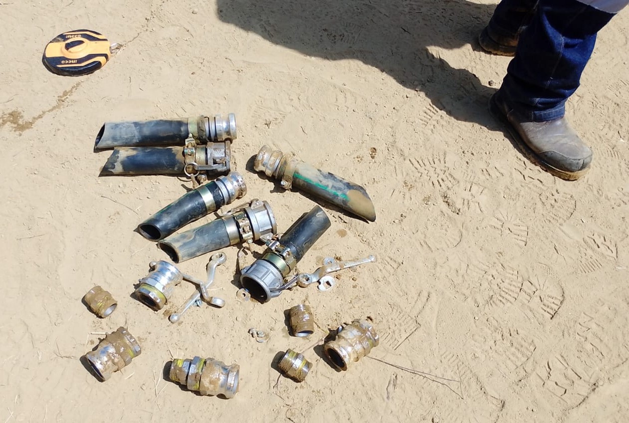 Las Fuerzas Armadas a través del Cuerpo de Ingenieros del Ejército, tras recibir la alerta de baja de presión, realizó una operación militar de seguridad hidrocarburífera en la provincia del Guayas, cantón Chongon, donde se encuentra un tanquero saliendo de la línea del poliducto, donde el conductor se da a la fuga, tras realizar un registro se obtuvieron los siguientes resultados: