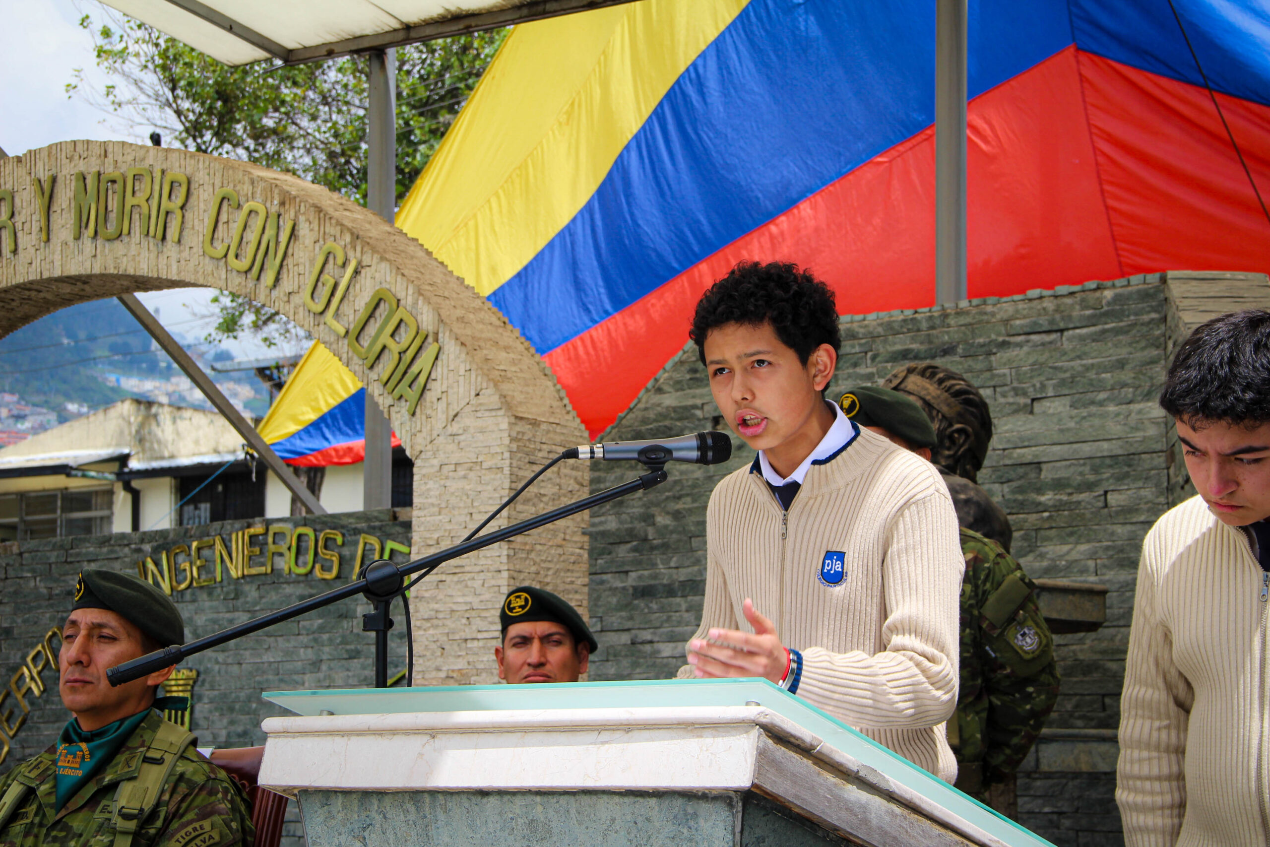 Los estudiantes de la Unidad Educativa Pío Jaramillo Alvarado rindieron un emotivo homenaje, destacando la importancia de mantener vivos el respeto y la identidad que nuestro Himno representa para la Patria. El Coronel Klever Almeida, Comandante del Cuerpo de Ingenieros del Ejército, evocó la historia y el legado que perduran en cada nota sagrada.